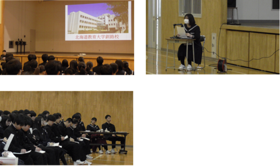 登壇した3年生は12月から準備を重ね、志望校選びの決め手や苦労した点、試験当日の様子などを具体的に伝えてくれました。発表を終えた3年生からは「先輩の報告を参考にしたので、後輩の進路活動に生か