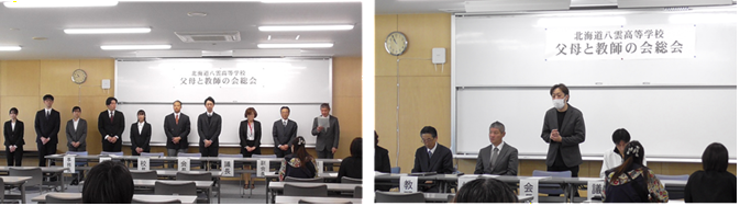 4月9日の5・6時間目に体育館で対面式が行われました。この行事は新入生に八雲高校の魅力を知ってもらうことを目的としています。