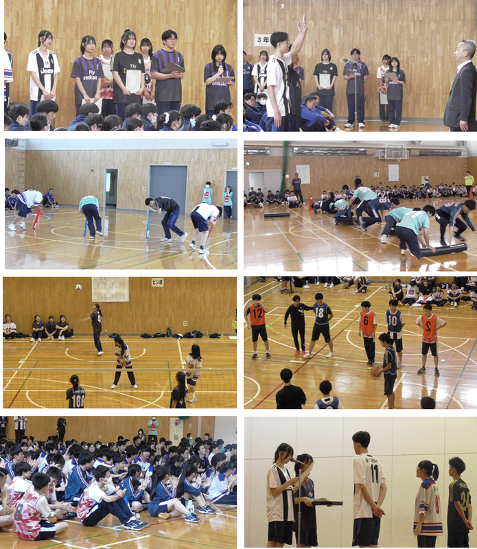 3月21日(金)、本校体育館で春季体育大会が行われました。今年は、フリスビードッジビー、バブルサッカー、バレーボール、バスケットボールの4種目で学年対抗戦が行われました。また、バレーボールとバスケットボールには、先生方も教員チームとして参加し、熱戦が行われました。1・2年生がクラスの垣根を越えて団結し、得点を競い合う姿が印象的でした。体育館の中には、仲間を応援する大歓声が響いていました。