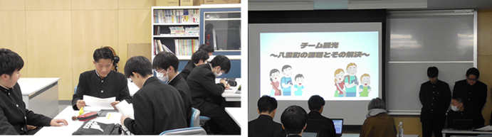 後半は、今まで学んできたことをベースに「二海のビジネス」について観光・行政・物産3つの観点から考察した内容を各グループが発表しました。